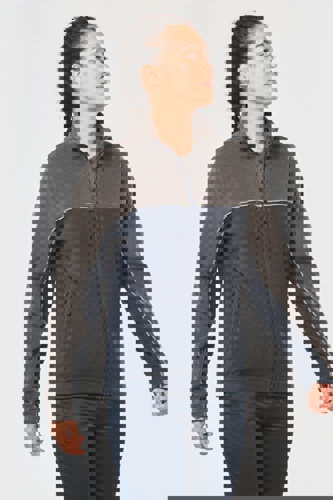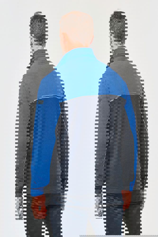 100% polyester. Gemaakt van 100% gerecycleerd polyester. Anti-pluis microfleece. Rechte snit. 2 ritszakken opzij + 1 borstzakje met rits Gerecycleerde toon-op-toon plastic ritsen met ritstrekker. Contrasterende nektape met visgraatmotief. Contrasterende bies tussen de tweekleurige delen van het kledingstuk (lichaam, voorkant mouwen en rug). Elastische penhouder met 3 vakken op de linkermouw. Ophanglint in de kraag. Elastische mouwuiteinden en boord. Tear-away merklabel.